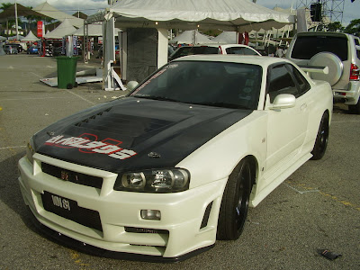 Nissan Skyline R34 racing style, installed with Voltex GT wing. Car owner has specially pick this plate number for matching the model of this car,